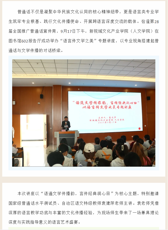 【学院动态】语通文学传雅韵 言传经典润心田 新视域文化产业学院(人文学院)成功举办语言传文学之美专题讲座