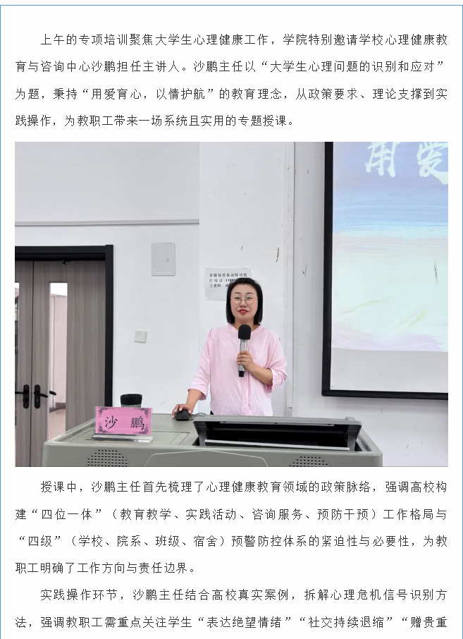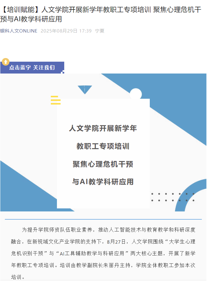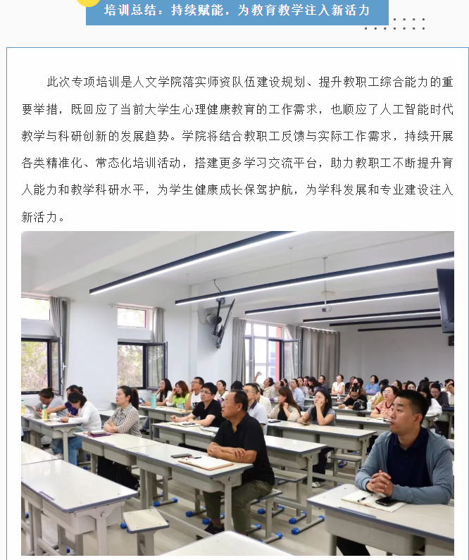 【培训赋能】人文学院开展新学年教职工专项培训 聚焦心理危机干预与AI教学科研应用