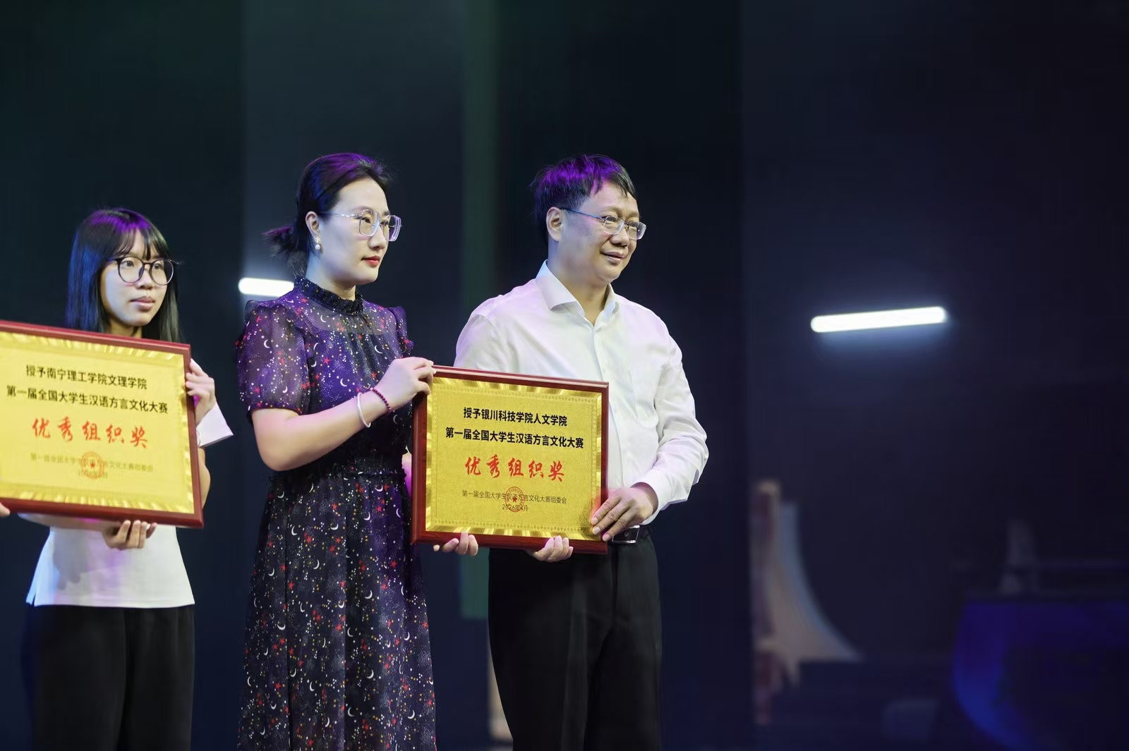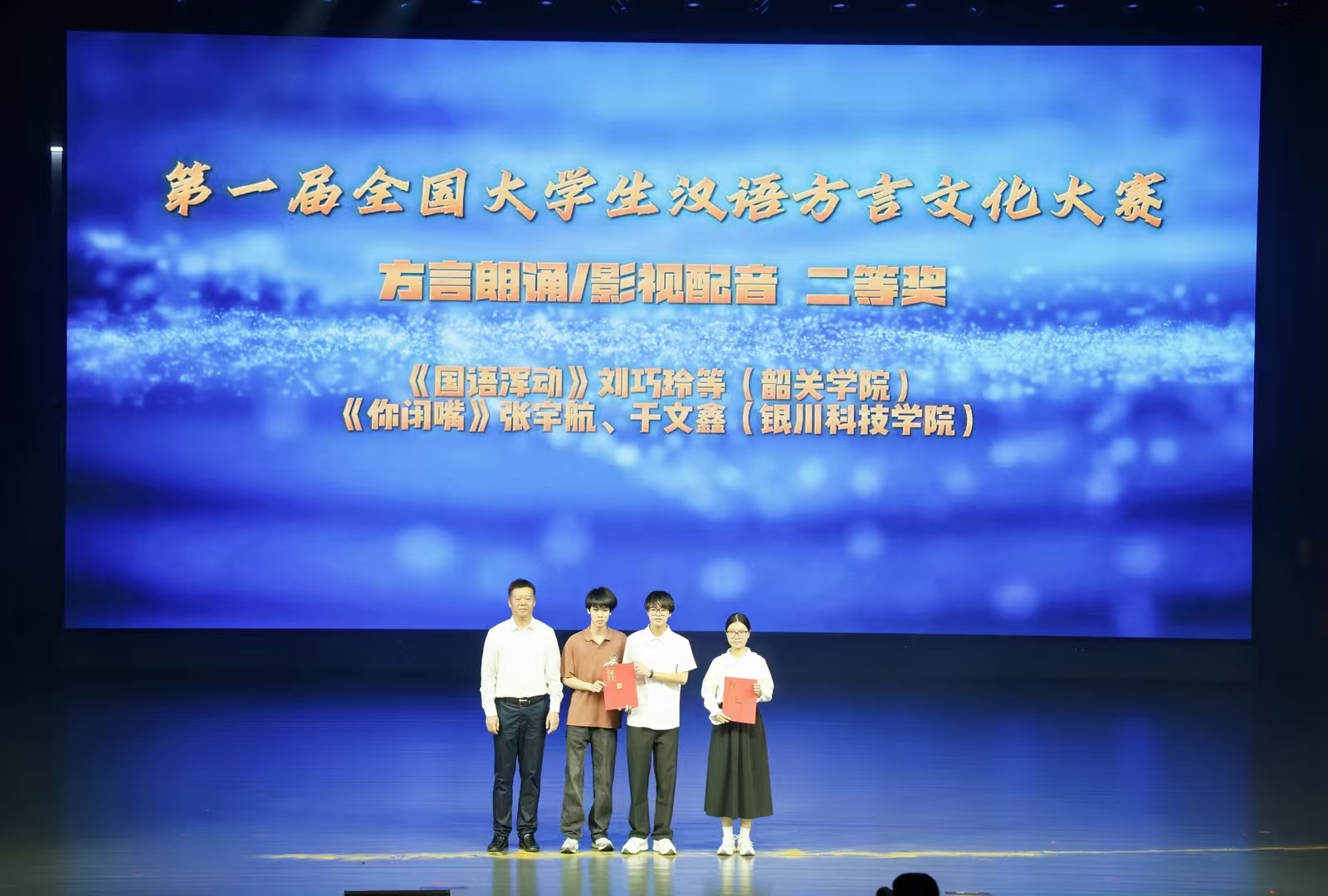 为积极响应赛事号召及国家保护方言及地方文化政策的落实,在学校统筹支持与专业教师悉心指导下,人文学院全面动员、认真筹备,广泛组织学生挖掘家乡方言故事、创作方言文化作品,凭借扎实的组织工作与突出的参赛成果。在本次颁奖典礼上,我校与多所兄弟院校一同登上领奖台。此次荣誉的取得,既是对我校师生积极参与文化传承的充分肯定,也是对专业建设与校园文化工作的有力激励本届大赛的举办为青年学子搭建了展示方言魅力、传承中华文脉的优质平台。